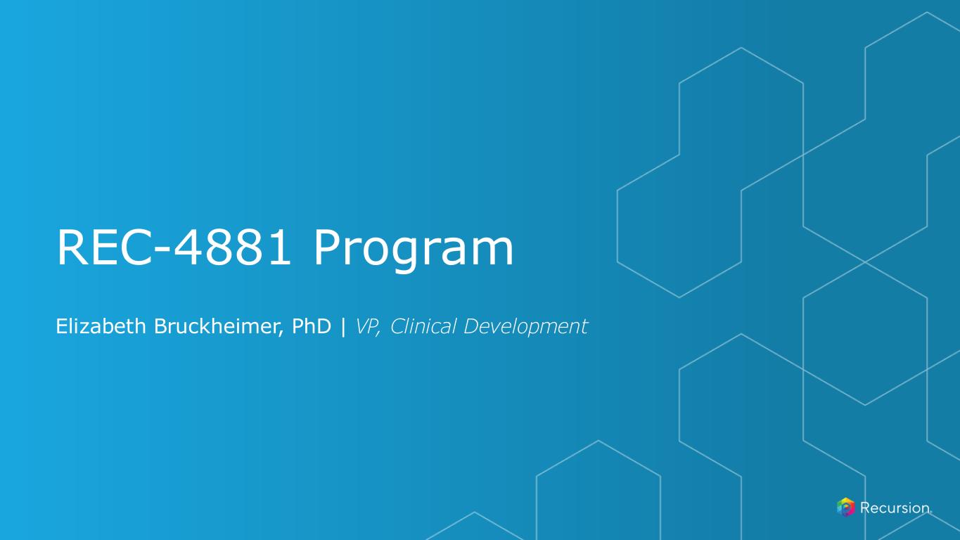REC-4881 Program Elizabeth Bruckheimer, PhD | VP, Clinical Development