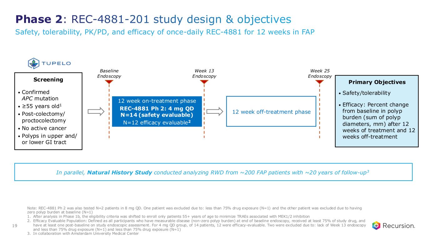 DocumentPositive Phase 1b/2 Results from Ongoing REC-4881 TUPELO Trial Demonstrate Rapid and Durable Reductions in Polyp Burden in Familial Adenomatous Polyposis (FAP) at 25 Weeks